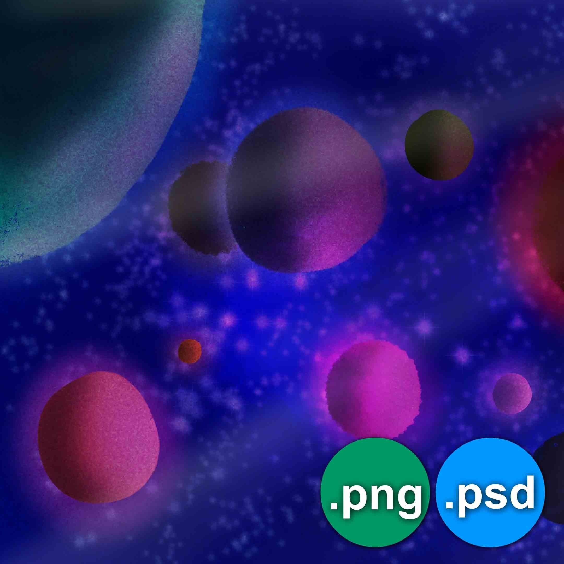 Abstract images can be useful for wacky animated scenes, design projects, websites and more! Your purchase grants you access to PSDs, JPEGs, and PNGs of the backgrounds listed here. Some include a .procreate file as an added bonus. Plus each background includes it's layers split into multiple images for further editing outside of Photoshop.